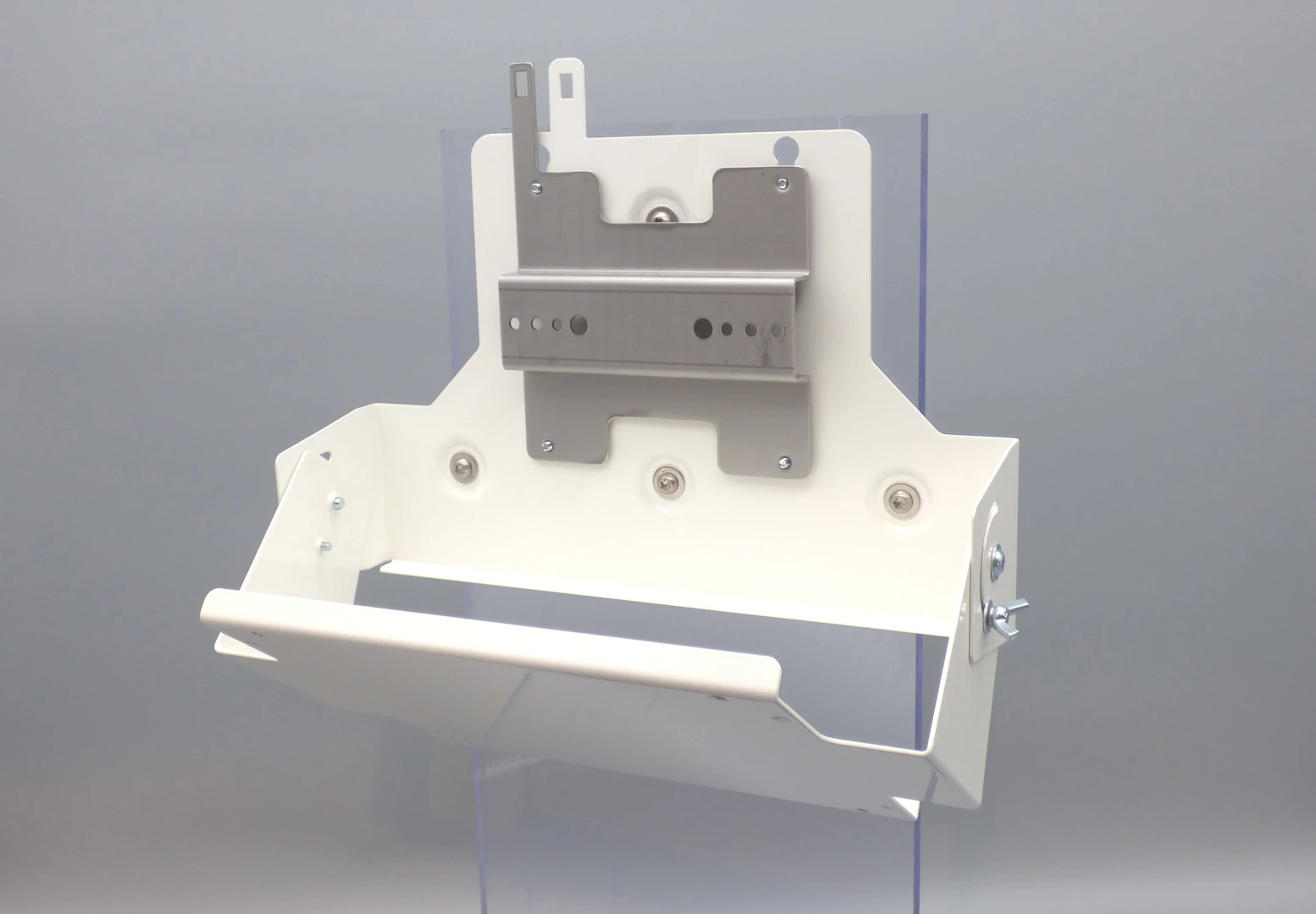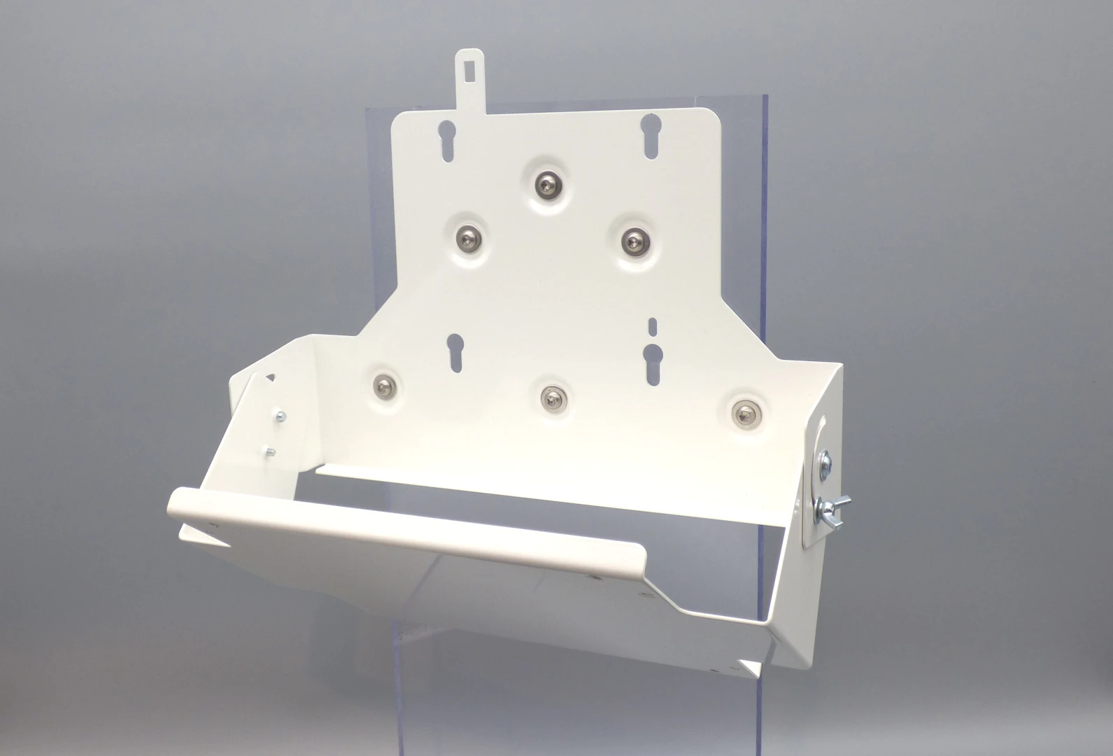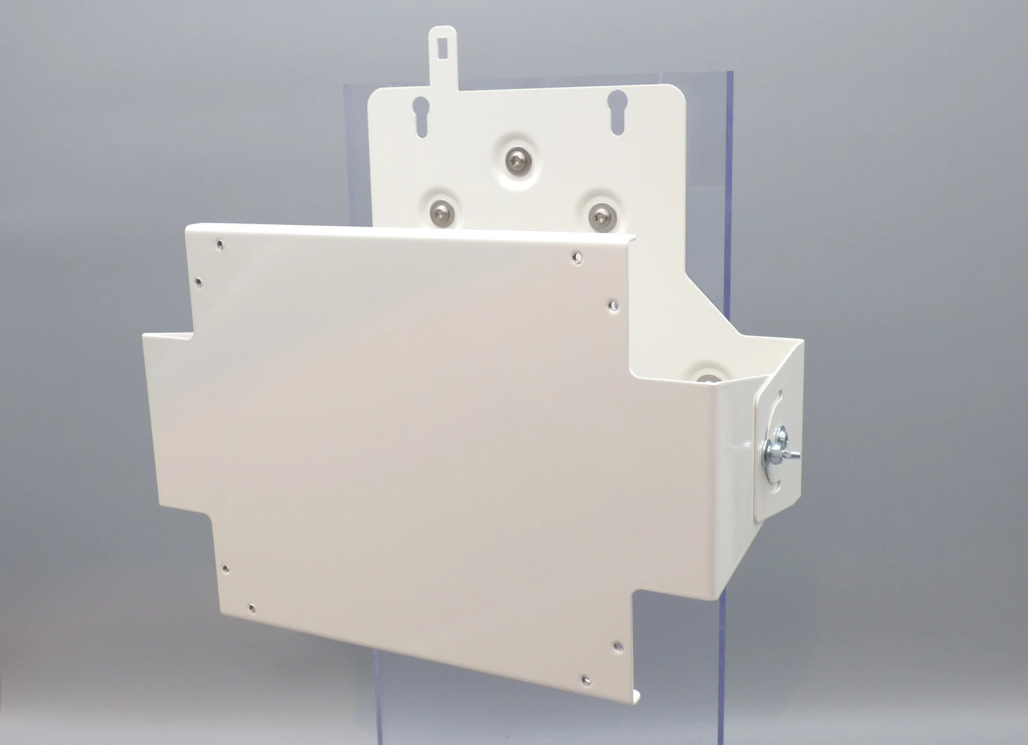 Kombinierte Halterung für Aruba Access Points und Patchantennen ermöglicht die platzsparende Montage von Aruba Access Points mit externen Patchantennen an Wand oder Decke. Die Antenne wird an der Vorderseite befestigt und kann – zusammen mit der Front – je nach eingesetztem Access Point um ca. ±15° bis ±30° nach oben/unten geschwenkt werden. Das spart Platz und Montagezeit, da nur eine Halterung für AP und Antenne gesetzt wird. Material und Farbton entsprechen unserenunseren anderen Halterungen für den Innenbereich: 1 mm Zinkblech, pulverbeschichtet, Standardfarbe weiß (RAL 9010); andere Farben sind nach Rücksprache möglich.