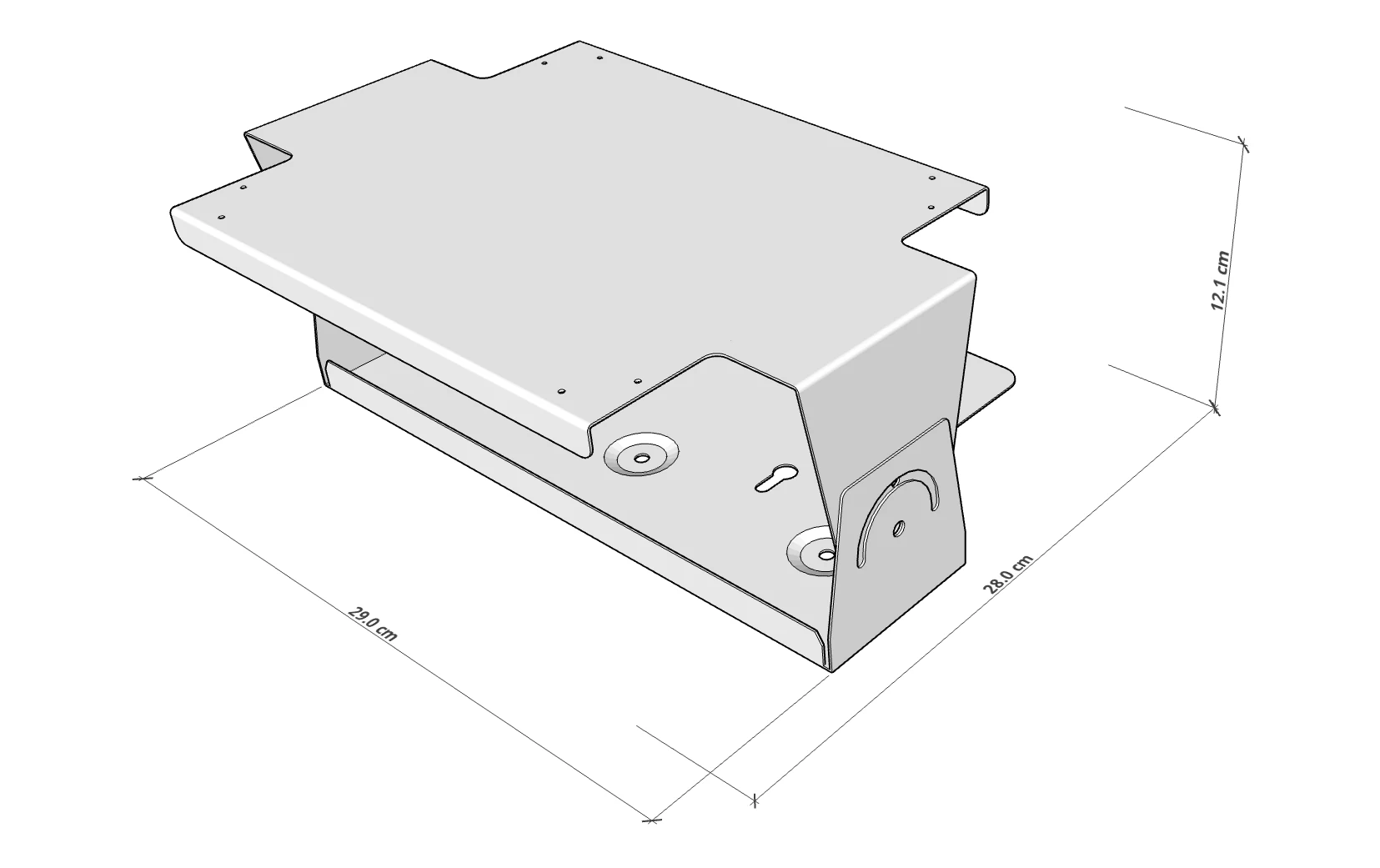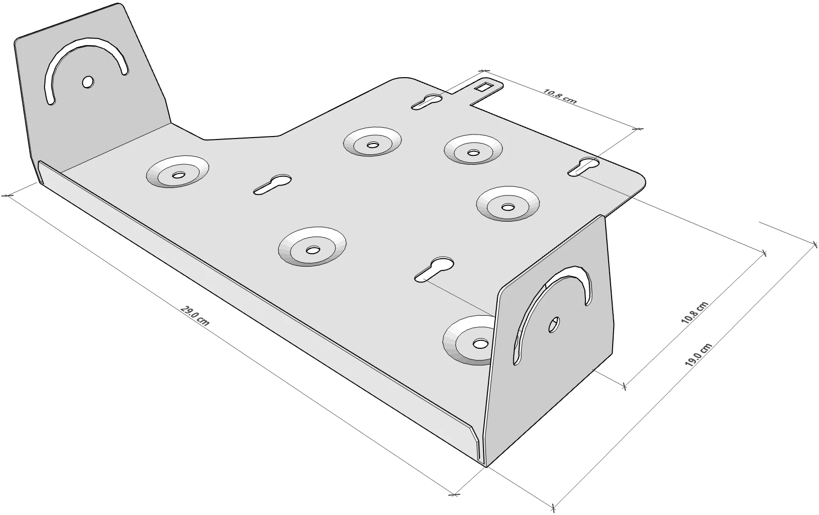 – Abmessungen der Halterung: B 290 mm × H 280 mm × T 121 mm.