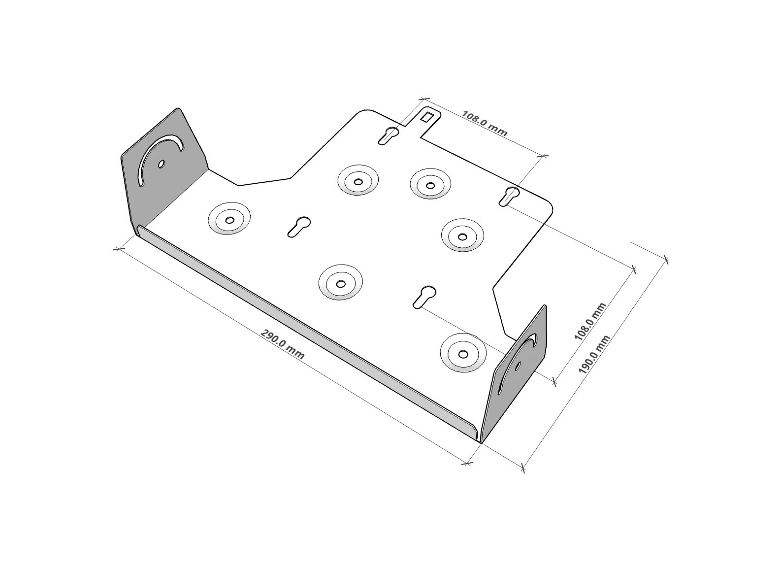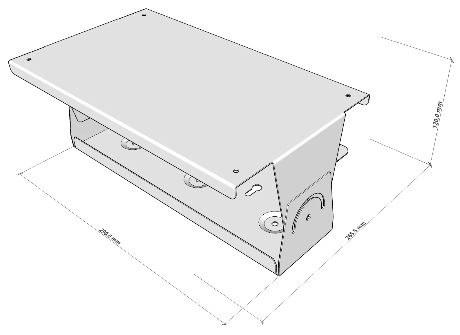 – Abmessungen der Halterung: B 290 mm × H 265,5 mm × T 120 mm.