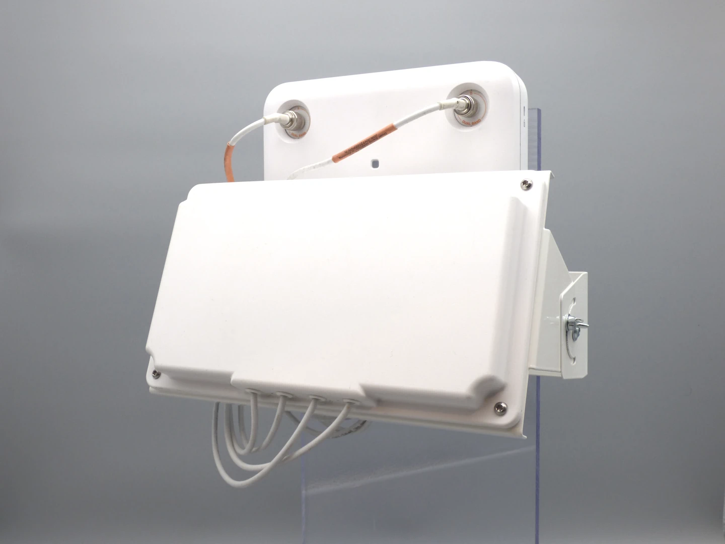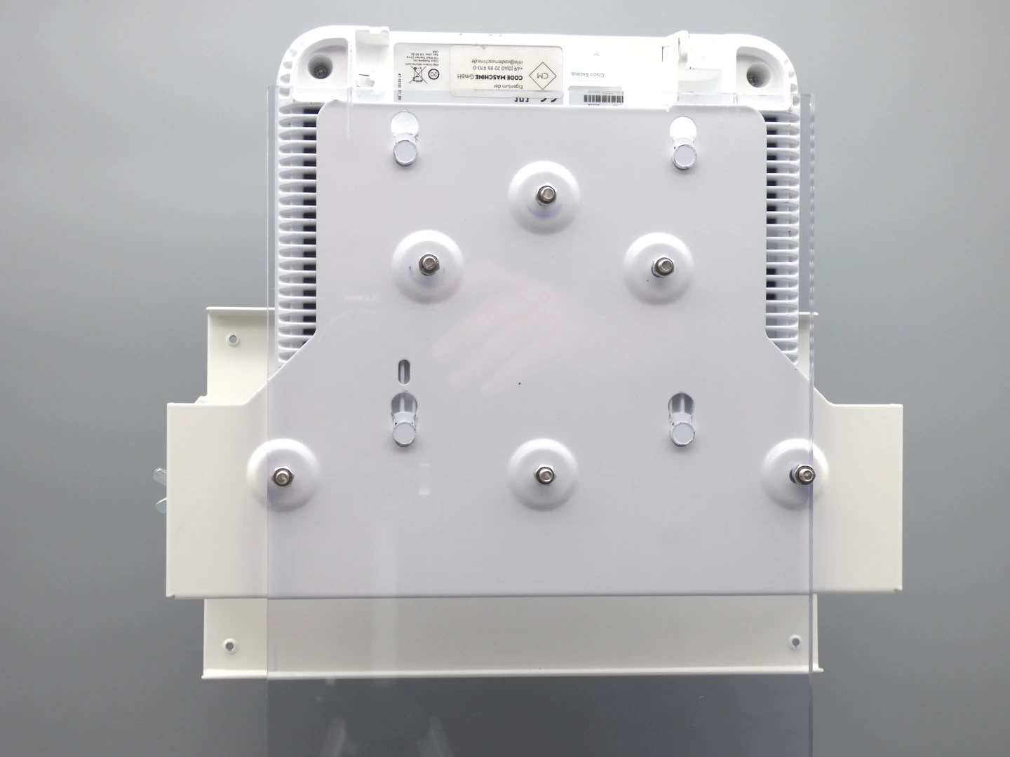 Kombinierte Halterung für Cisco Access Points und Patchantennen ermöglicht die platzsparende Montage von Cisco Access Points mit externen Patchantennen an Wand oder Decke. Die Antenne wird an der Vorderseite der Halterung befestigt und kann – zusammen mit der Front – je nach eingesetztem Access Point um ca. ±15° bis ±30° nach oben/unten geschwenkt werden. Dadurch sparen Sie Platz und Montagezeit, weil nur eine Halterung für AP und Antenne gesetzt werden muss. Material und Farbton entsprechen unseren Wandhalterungen: 1 mm Zinkblech, pulverbeschichtet, Standardfarbe weiß (RAL 9010); auf Wunsch sind abweichende Farben nach Rücksprache möglich.