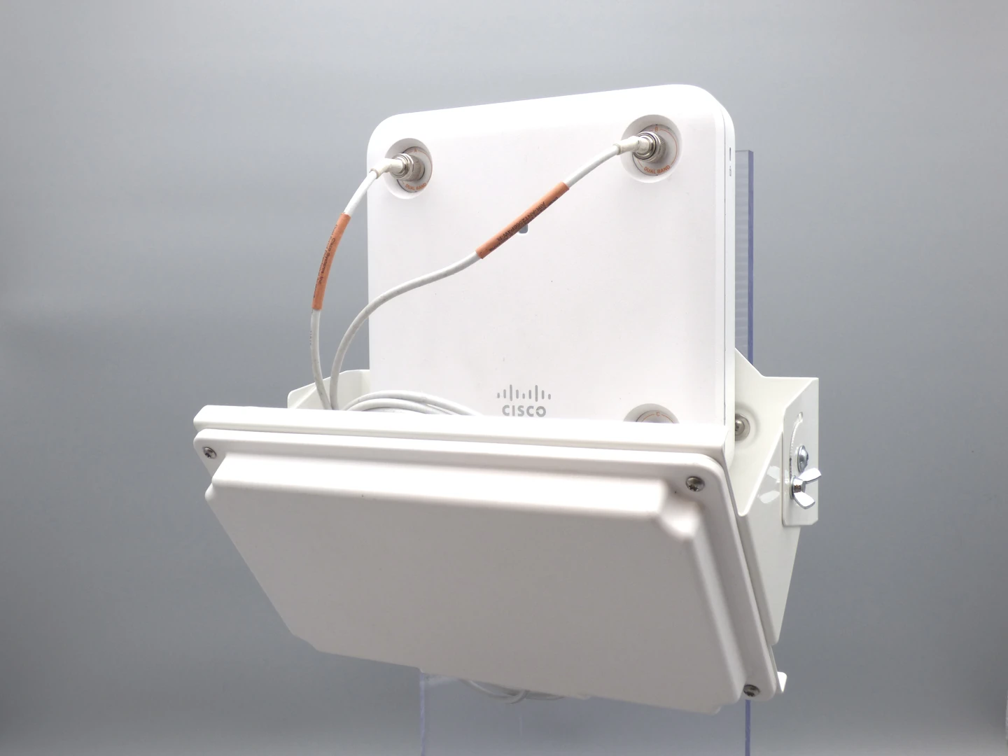 - Kombinierte Montage für Cisco-AP und Patchantenne – spart Platz und Montagezeit